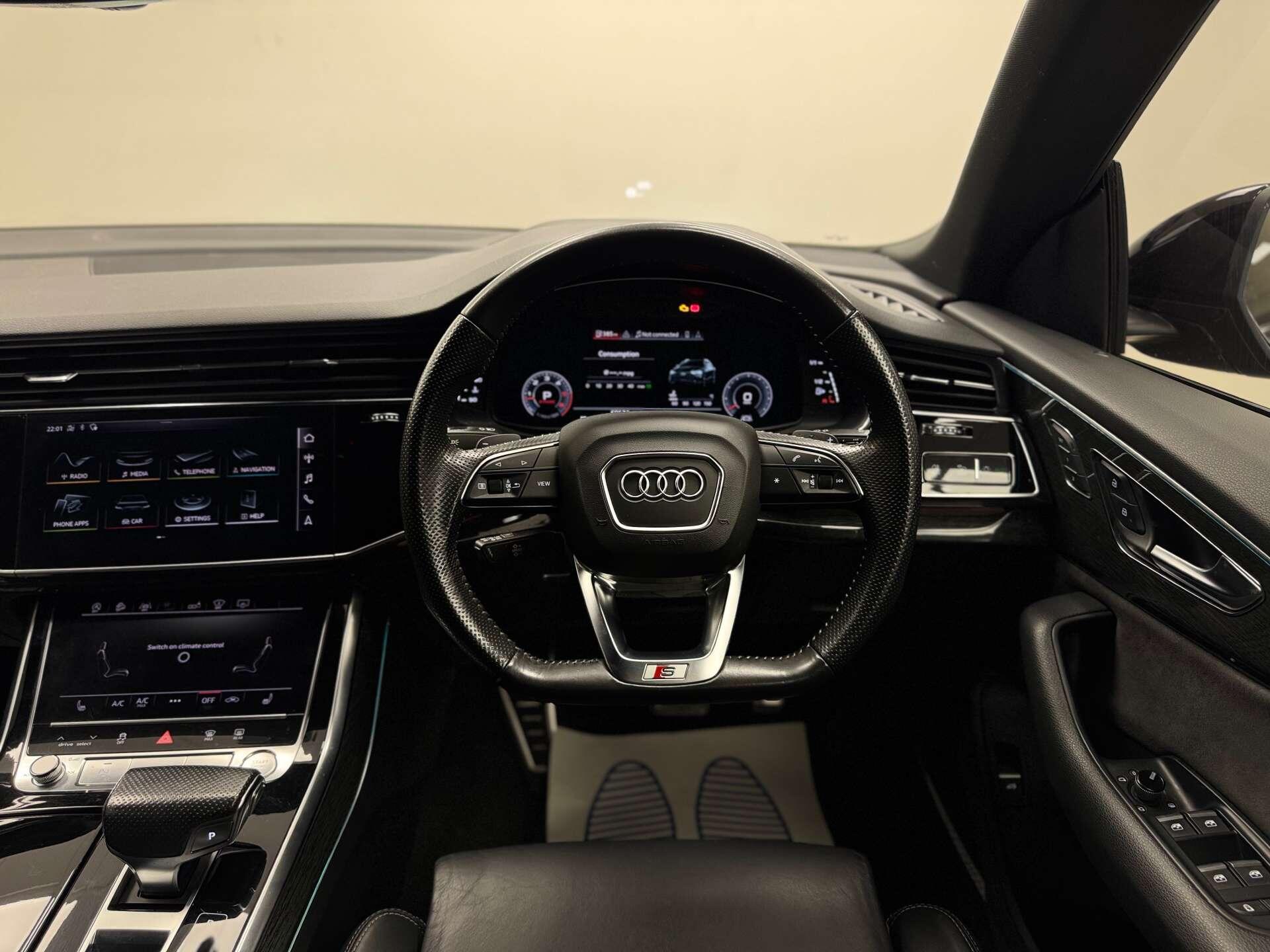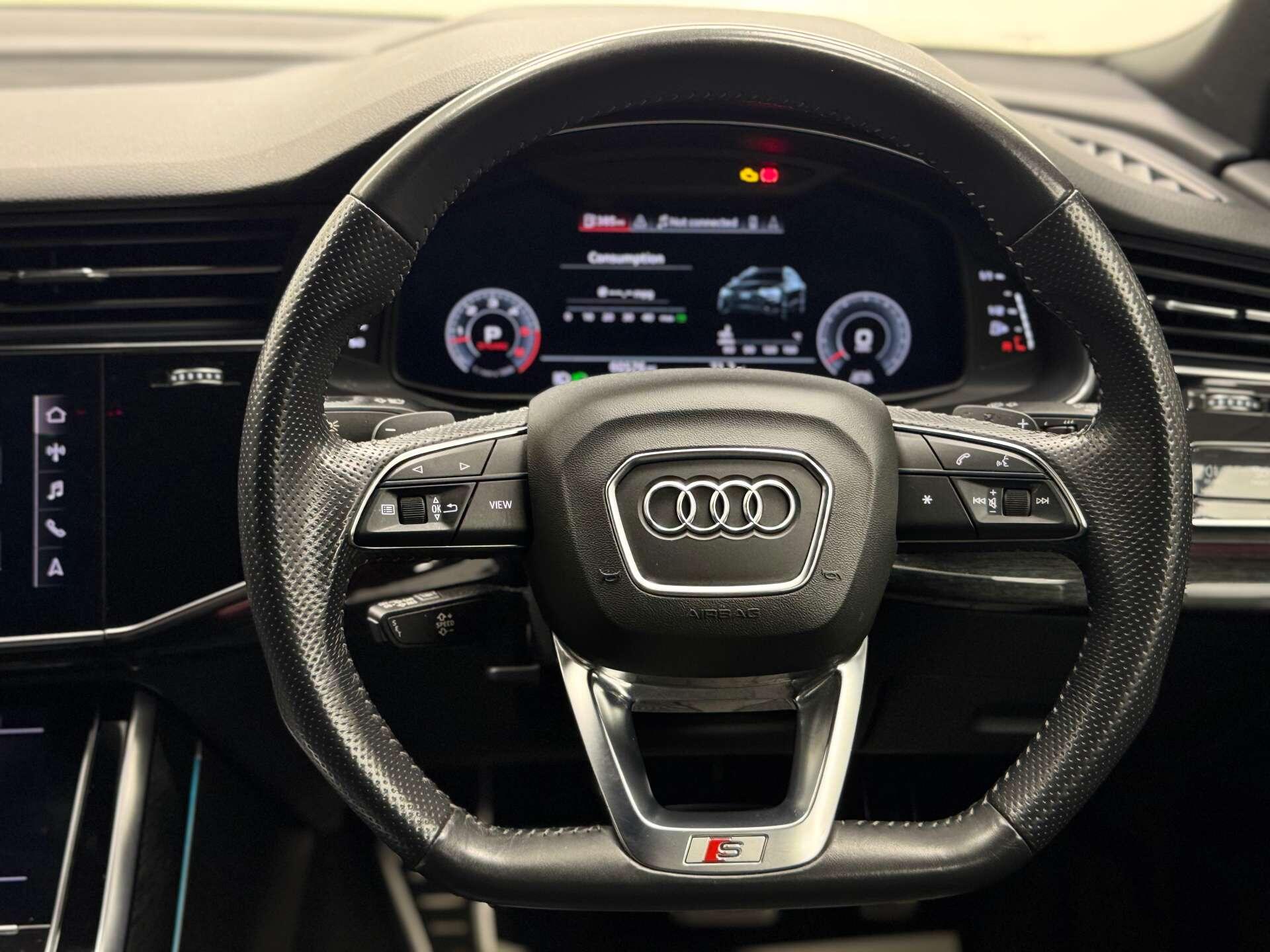 The Audi Q8 is equipped with a host of premium extras designed to enhance your driving experience. The Head-Up Display keeps vital information in your line of sight, while the Panoramic Glass Sunroof floods the interior with natural light, creating an airy and open atmosphere.