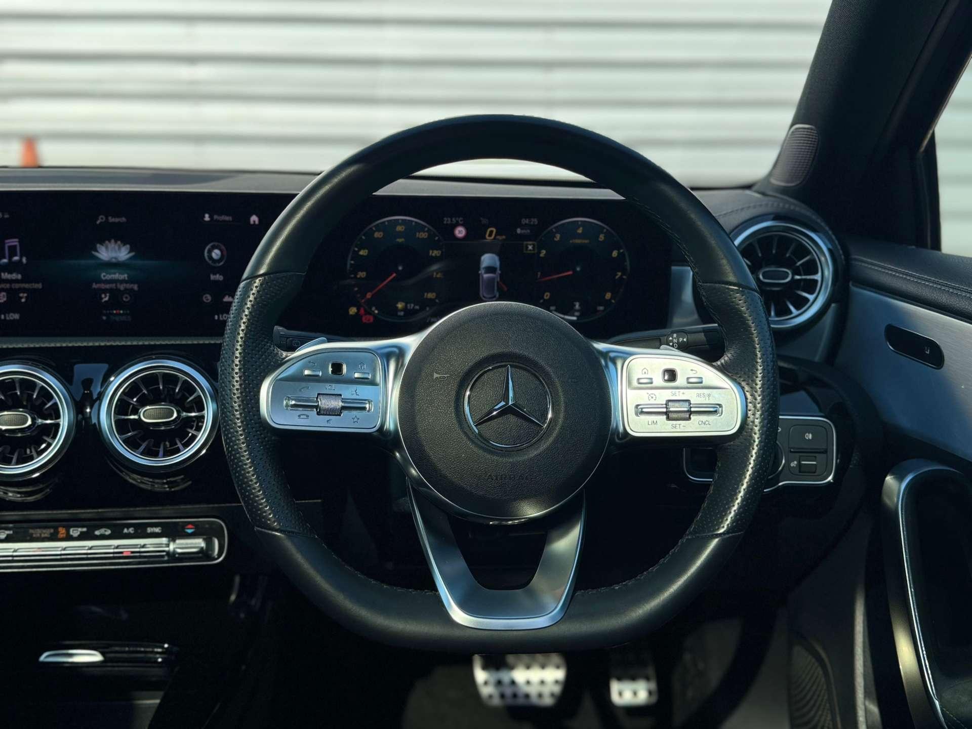 Introducing the stunning Mercedes-Benz A-Class 1.3 A 200 AMG Line Edition Premium Auto 5dr, a masterpiece of German engineering and design. With only 23,500 miles on the clock and just one previous owner, this exquisite vehicle is ready to offer you an unparalleled driving experience.